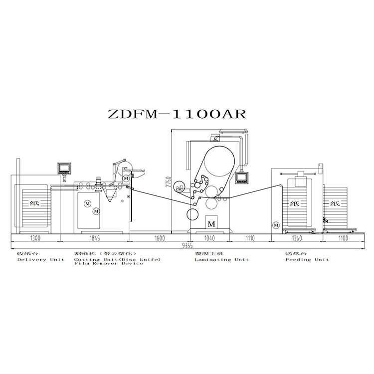 Spatium consilio: Tota longitudo membranae veli automaticae amoventis Laminating machina circiter 9.4 metra est, et additamenta repositionis et spatii repositionis repositionis rotulorum cinematographicorum reservabuntur. Commendatur ut saltem 2 metra canalem operandi in latere anfracto reservare.